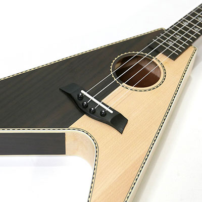 ハードロックとハワイアンの融合です。オフセットのVシェイプスタイルが、目に飛び込むインパクト” ” のウクレレです。ハードなリフ?テクニカルな早弾き?ウクレレでプレイしませんか?