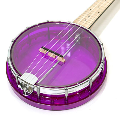 トップ面にはクリアヘッドを使用し、リム・リゾネーター部分はクリアカラーを使用した、爽やかでインパクトのあるバンジョーウクレレです。リゾネータースタイルでバンジョーの跳ねるようなサウンドとウクレレの手軽さが融合した、演奏をして心も弾むバンジョーウクレレです。
