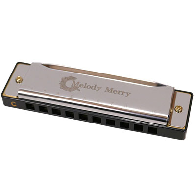 Melody Merryより10ホールズハーモニカのご案内です。手の内に収まるほどの大きさで10個の穴が開いています。そこから10ホールズハーモニカと呼ばれています。1つの穴で”吸う”と”吹く”の両方で音を出すことが出来、3オクターブの音階を持ちます。Melody Merryでは多種のキーを取り揃えております。曲に合ったキーをお選びください。