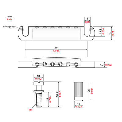 50's Vintageスタイルの軽量アルミ製テールピースセット。アルミ製のボディは共鳴性を高め、ToneProsの特許取得済みのロック構造により、ギターにしっかりと固定することで弦の振動をボディに伝え、イントネーション、サスティンが向上します。T1ZAは、ミリ規格のスタッド&アンカーを付属したテールピースセットです。殆どの日本製、アジア製のギターに搭載可能なモデルです。またテールピースが固定されている事で、弦交換の際テールピースが外れる事がなく弦交換前のセッティングが保たれます。
