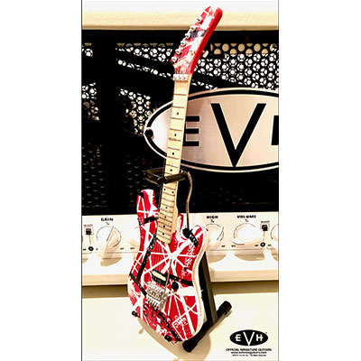 EVHミニギターのプロジェクトの目的は、エディがギタリストとして演奏してきた多くの伝説的なギターを忠実に再現し、1/4スケールのミニチュア・レプリカ・ギターのコレクションとして熱烈なファンの皆様に提供することです。コレクターやファンの期待に応えるにふさわしい高品質をハンドメイドにより実現することができました。これまでの安価な製品とは次元を越えたエディ公認の製品です。EVHミニギターは、エディ自身の承認を得た、唯一の公式EVH承認ミニギターラインです。