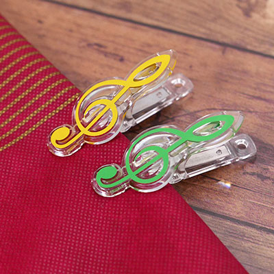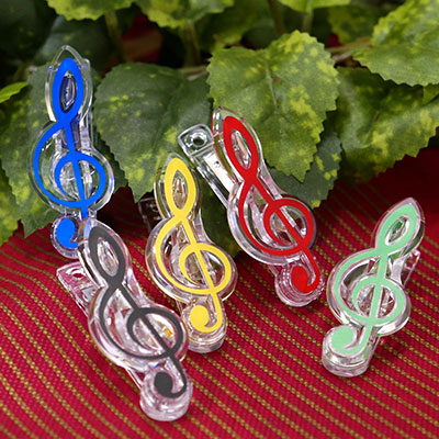 本に挟んだり、楽譜をとめたり、メモをとめたりと、さまざまな用途に使えるかわいらしいクリップになります。8分音符とト音記号それぞれ5色展開になります。