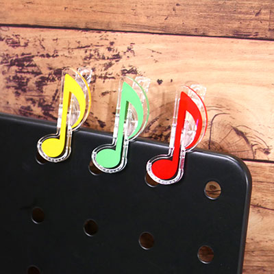 本に挟んだり、楽譜をとめたり、メモをとめたりと、さまざまな用途に使えるかわいらしいクリップになります。8分音符とト音記号それぞれ5色展開になります。