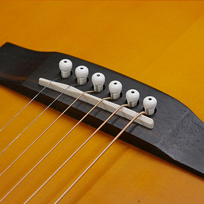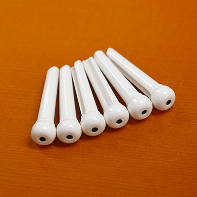 ABS樹脂素材の一般的なブリッジピンです。アコースティックギター全体のワンポイントとしてカラーを変えることで印象が変わります。2mmドットがアクセントの3 カラーからお選びください。