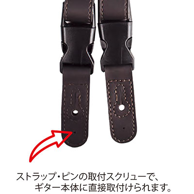 ストラップ・ピンの取付スクリューで、ギター本体に直接取付けられます。