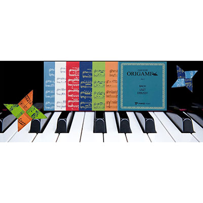 バッハ・リスト・ドビッシーの名曲が「おりがみ」になりました。ピアノの楽譜が印刷されたオシャレなおりがみです。