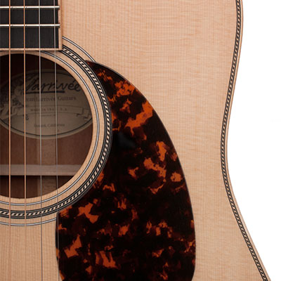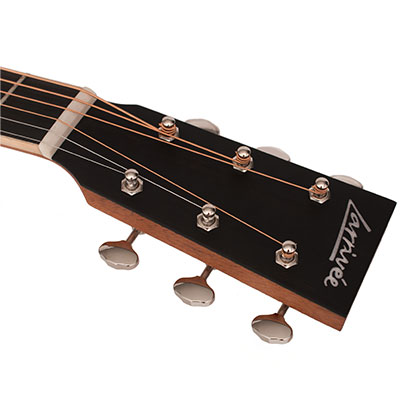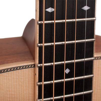 40シリーズのマホガニー・サイド&バック・モデル。新しい「スキャロップド・パラボリック・ハイブリッド」ブレーシングを採用!オリジナルのXブレーシングを基に、非対称のスキャロップド・クロス・ブレーシング・パターンを横方向に組み合わせた新たなパターン!この新しいブレーシング・パターンは、最小限の木材で最大の強度を実現。さらに、響板の振動を向上させ、制御したダイナミックな低音域を実現。新たなラリビー・トーンを奏でるモデルです。オール・ソリッド・ウッドのみを使用しており、ボーン・ナットとサドル、フィンガーボードにはダイアモンド型ドット、ギア比18:1のオープン・バック・チューナーを装備。