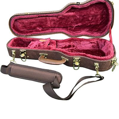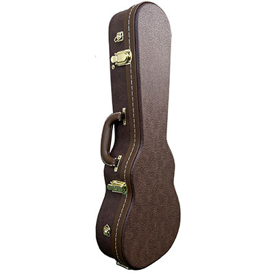 従来のTWEED 生地と同様にVintage 感あふれるブラウンカラー、内装には高級ビロード生地を使っています。耐久性とデザイン性をあわせもつ、高級ハードケースになります。ハンドルには 厚手の合板を使用し、ショルダーストラップとネームタグが付属しています。ショルダーストラップを使えば肩掛け可能で快適な持ち運びが可能になり、便利な小物ポケットもあるので、チューナーやカポなど小物なども一緒に持ち運べます。