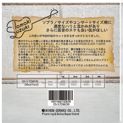 鈴木智貴シグネイチャーストリングス 発売。鈴木 智貴 (Suzuki Tomoki),奈良県出身ウクレレパフォーマー。鈴木さん曰く、「ソプラノサイズやコンサートサイズ用に適度なハリと温かみがありさらに高音のヌケも良い弦がほしいこの思いが今回の弦のセットを作るきっかけとなりました。」