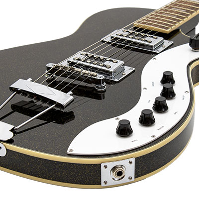 1959年から1962年に販売した1423モデルは、イリノイ州のシカゴにあった ハーモニー工場で生産したギターでした。その当時、宇宙を思わせるデザイン そしてルックスから、コレクターの間では「ジュピターH49」のニックネームで 親しまれたモデルです。 そのユニークさはルックスやデザインだけでなく、ユニークなサウンド作りを 可能にするブレンダー・コントロール。フロントとリアそれぞれのピックアップに ボリュームとトーン・コントロールを備え、これら2基のピックアップ間のバランスを ブレンドするコントロールを装備しています。ピックアップ・セレクター・スイッチを センター・ポジションにセットし、ブレンダー・コントロールを前後にダイアルすれば 「ワウ・ペダル」を使用しているかの様なトーンを再現します。オリジナル・トーンを 再現するDuncan-Design?カスタム・ピックアップを搭載!