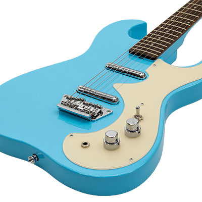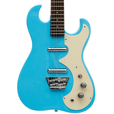 60年代初頭のエレキ・ギター・ブームの時代に誕生したこのモデルは、 小型アンプを搭載したハードケース「アンプ・イン・ケース」シリーズとして 登場しました。オリジナル・モデルとなる1448は、リップ・スティック・ シングル・コイル・ピックアップを1基搭載したショート・スケールのモデル でしたが、後にシングル・コイルを2基を搭載した1449が登場します。 リイシュー・モデルには、各弦の調整が可能なアジャスタブル・ブリッジ、 ネック・プロファイルもCシェイプに12インチ・ラディアスに改良し、高い 演奏性のモデルにグレード・アップしています。