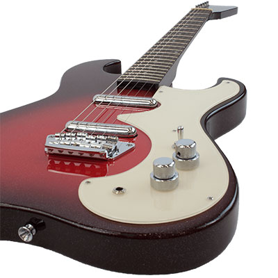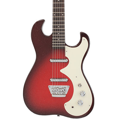 60年代初頭のエレキ・ギター・ブームの時代に誕生したこのモデルは、 小型アンプを搭載したハードケース「アンプ・イン・ケース」シリーズとして 登場しました。オリジナル・モデルとなる1448は、リップ・スティック・ シングル・コイル・ピックアップを1基搭載したショート・スケールのモデル でしたが、後にシングル・コイルを2基を搭載した1449が登場します。 リイシュー・モデルには、各弦の調整が可能なアジャスタブル・ブリッジ、 ネック・プロファイルもCシェイプに12インチ・ラディアスに改良し、高い 演奏性のモデルにグレード・アップしています。