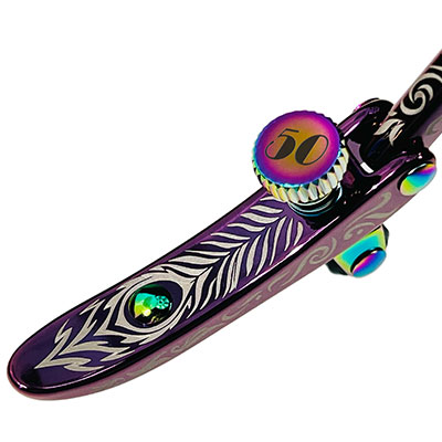 50周年限定アニバーサリーコレクション第4弾、C2vs - Violet Sky - モデル。バイオレットスカイは、深く豊かな紫色の背景にレーザーでエッチングされたセコイアの葉にインスピレーションを得た精巧なパターンが特徴です。ハイテクチタン仕上げによって可能になったバイオレットのカラーは魅惑的な輝きを持つ、深くて豊かな色合いです。虹色のマルチカラーの金具が全体的にまばゆい効果をもたらし、美しい紫色の日の出をイメージしました。
