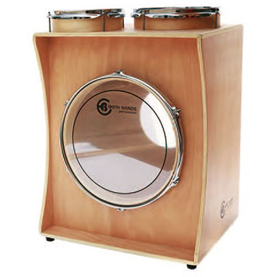 BothHands のストリートカホニー BHC-SI は、ドラムセットとカホンをミックスしたBothHands 自慢のオリジナルカホンです。持ち運びが簡単で、用途を選ばずに最小限のセットで、最大限にドラムサウンドを奏でることが可能。スティックでの演奏は勿論、素手でタムタムやスネアを叩くことで、カホンのニュアンスでのドラム演奏が可能になりました。BothHands オリジナルドラムヘッドはストリートカホニー用にチューニングしており、余計な倍音をカットし、生の鳴りを余すことなく忠実に再現することに成功しています。付属ペダルはリモート式でバスドラムペダルの設置位置は任意で変更が可能。