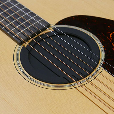 高弾力性のラバーを使用し、脱着時のストレスを解消したサウンドホールカバー。音量を抑えハウリングの防止が可能。ギターに合わせた2サイズよりお選びください。