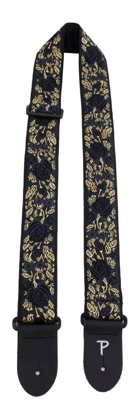 2" Jacquard Guitar Strap BLACK/GOLD ROSES ON BLACK