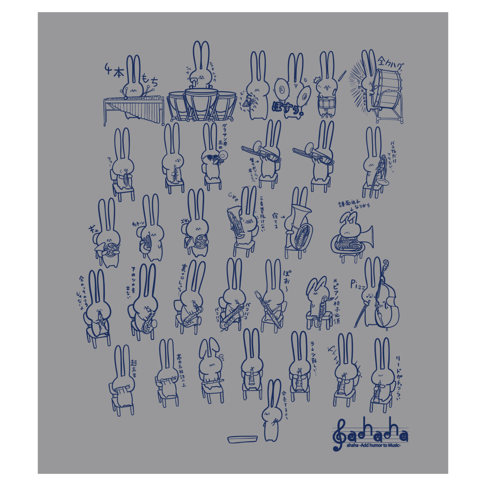 ahaha×ゆかてふ 楽器あるあるクロス 吹部 グレー/ネイビー [あるあるクロス 吹部 GRY/NVY]