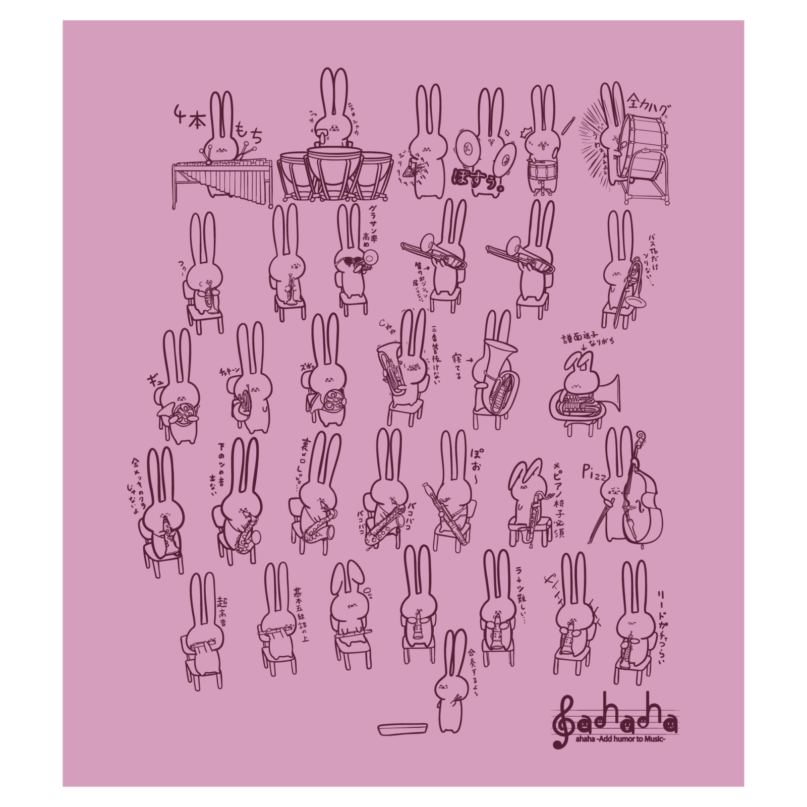 「吹奏楽あるある」のシーンを、ゆかてふデザインの「うさてふ」で表現。